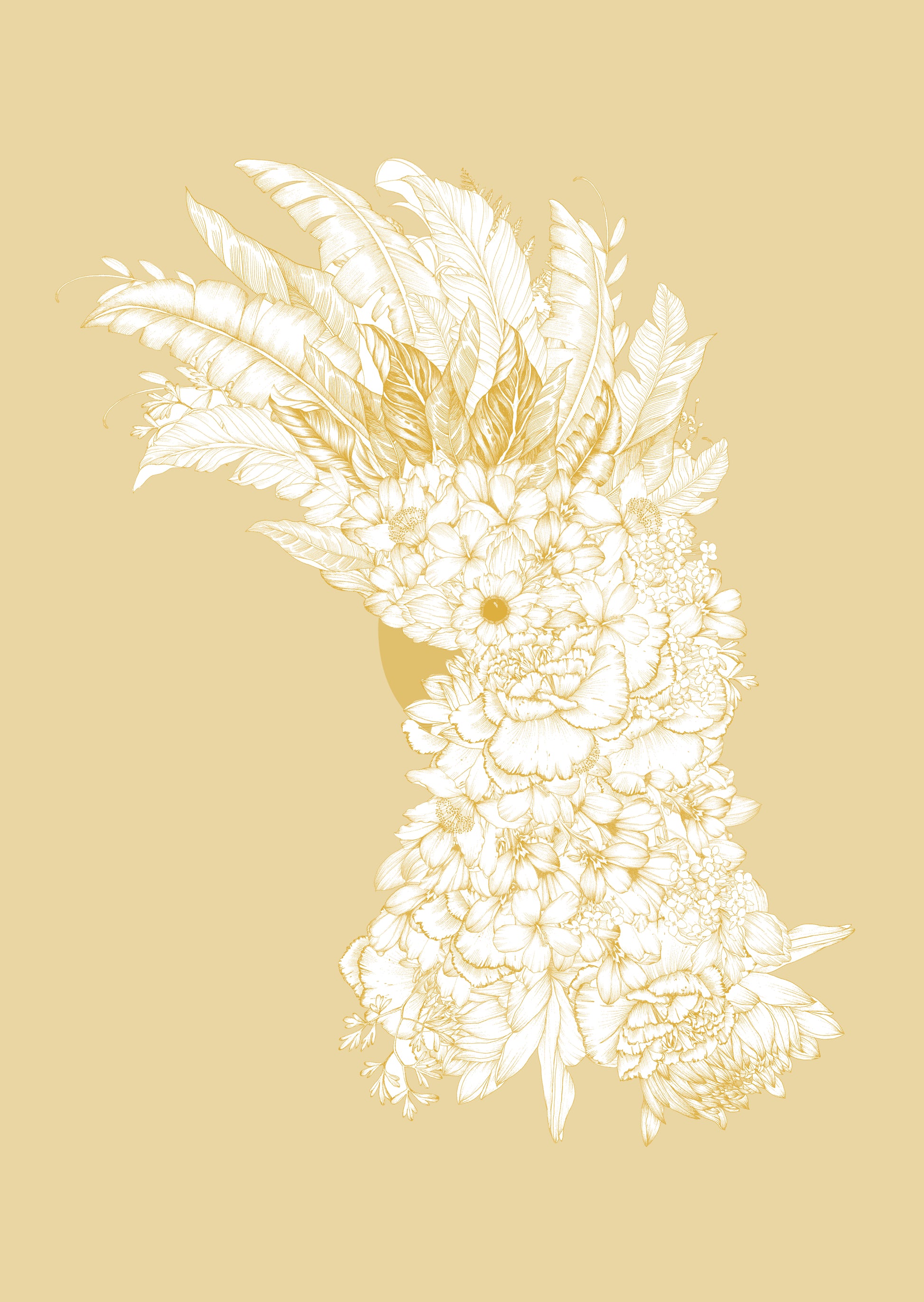 UNFRAMED Printed on responsibly sourced, uncoated A3 sized paper, this handsome Cockatoo is made up of hand illustrated botanical motifs. Available in this perfect buttery yellow tone.