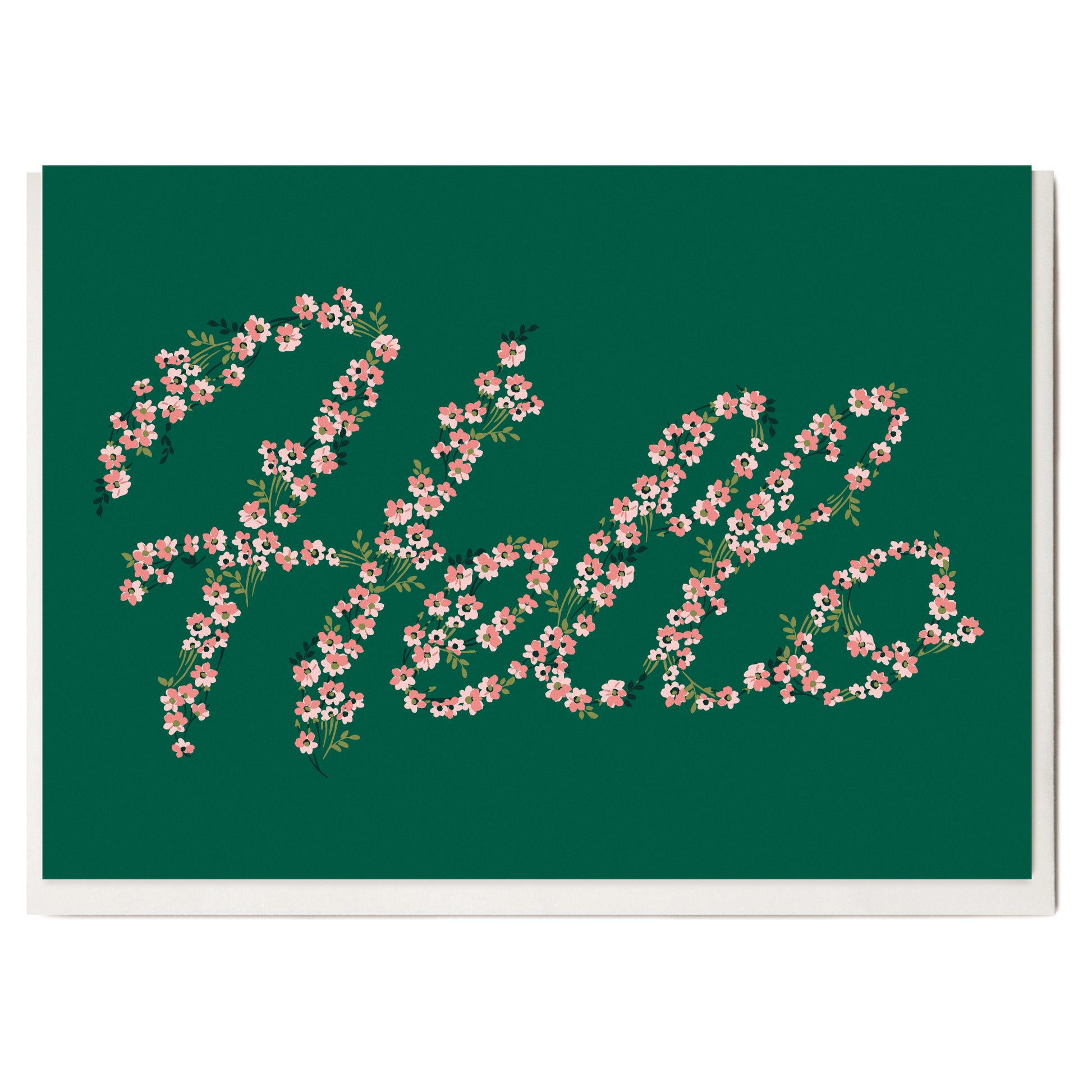 Hello A6 Greeting card printed on responsibly sourced, uncoated paper with matching envelope presented in a cello sleeve