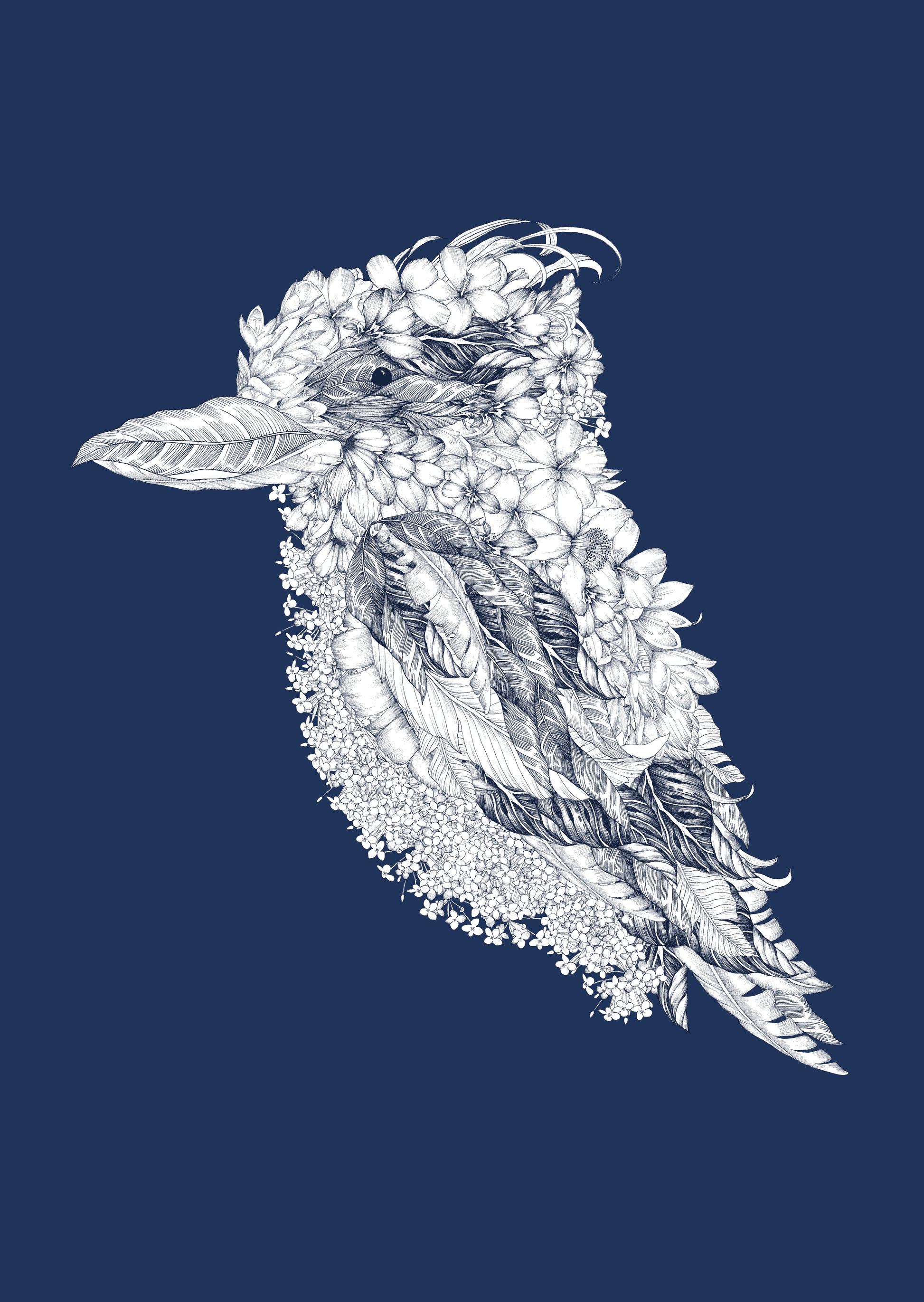 UNFRAMED Printed on responsibly sourced, uncoated A3 sized paper, this handsome Cockatoo is made up of hand illustrated botanical motifs.