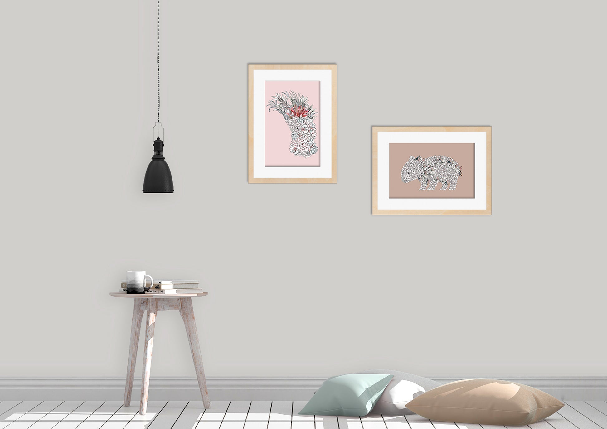 UNFRAMED Printed on responsibly sourced, uncoated A3 sized paper, this handsome Wombat is made up of hand illustrated botanical motifs.